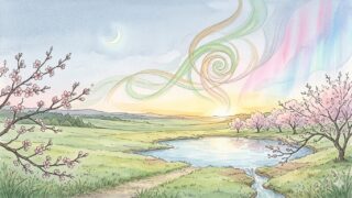 3月22日(旧暦2月4日)の宇宙のリズム。得卦「地沢臨」が示す「近づく」ことの意味。乙未のしなやかさ、春分2日目の光、三日月の始まり——今日、あなたが近づきたいものは何ですか?